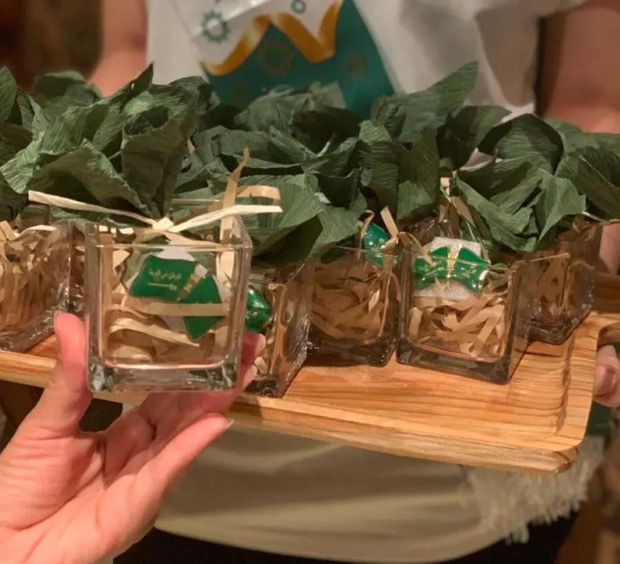 - توزيع قاعدة أكواب تحمل شعار اليوم الوطني.
