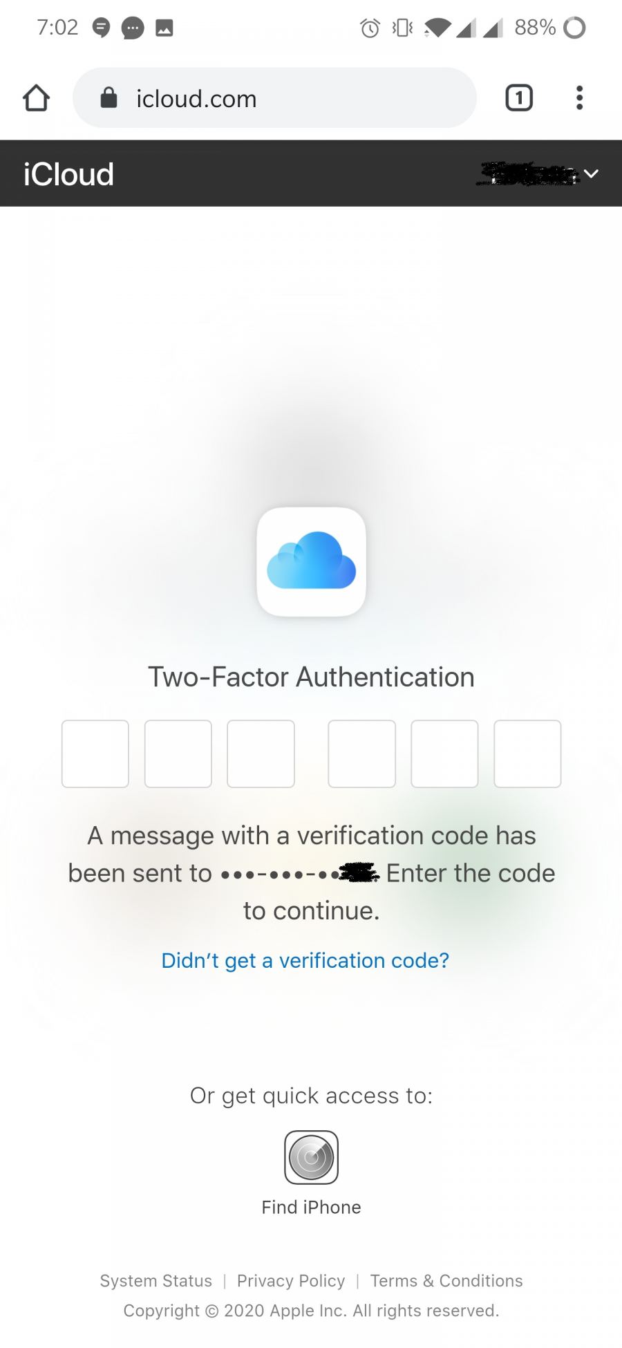 - ثم ستظهر لك صفحة التأكد من أنك صاحب الحساب، ستصلك رسالة رمز التحقق على هاتفك المحمول.