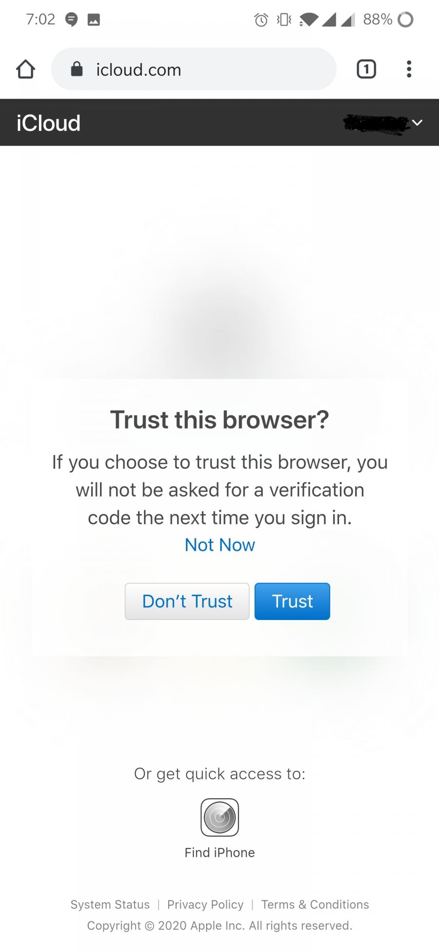 - ثم ستظهر لك رسالة تفيد بالوثوق بالجهاز الذي قمت بالدخول منه إلى اي كلاود.