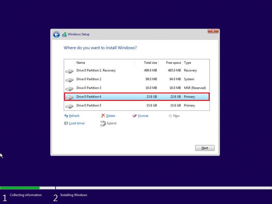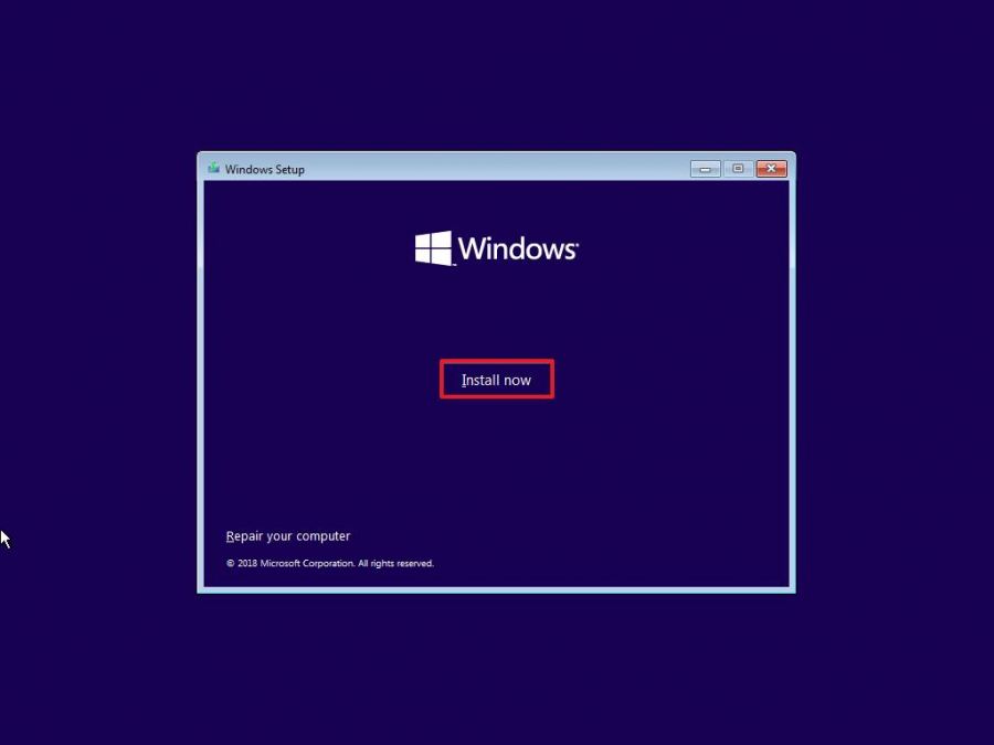 - سيقوم جهازك بالإقلاع مباشرة إلى تثبيت ويندوز 10.
