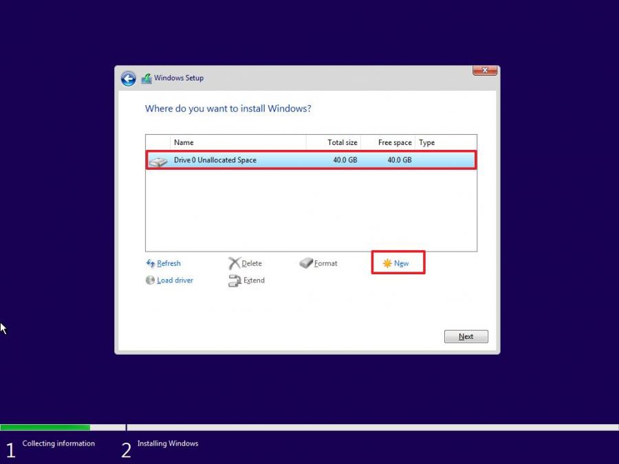 - أو يمكنك إختيار Custom install لتهيئة الأقراص.