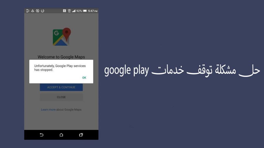 يعاني الكثير من مستخدمين أجهزة الأندرويد سواءً الهواتف الذكية أو الأجهزة اللوحية من ظهور مشلكة توقف خدمات google play، حيث تظهر للمستخدمين رسالة "توقف خدمات google play" أو "unfortunately google play services has stopped" وتستمر رسالة الخطأ بالظهور للعديد من المرات، الأمر الذي يجعلها مشكلة مزعجة للجميع، لهذا نقدم لكم في هذا المقال الحل الجذري لتوقف خدمات جوجل بلي، سنقدم لكم العديد من الحلول التي ستساعدكم من التخلص من مشلكة توقف خدمات google play، إليكم حل مشكلة توقف خدمات google play: